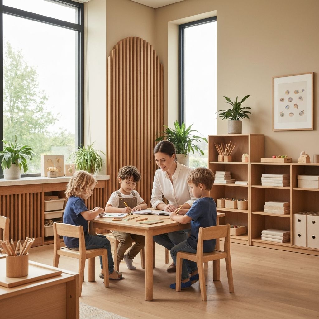 Aulas disenadas para inspirar la creatividad y el aprendizaje activo con materiales Montessori y mobiliario ergonomico.